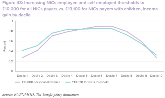 An increase in the NIC thresholds is beneficial for all earners, but has the highest appreciation for those on middle incomes.